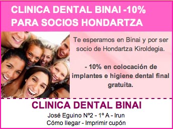 CLINICA DENTAL BINAI -10% PARA SOCIOS HONDARTZA
