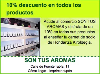 Acude al comercio SON TUS AROMAS y disfruta de un 10% en todos sus productos al enseñar tu carnet de socio de Hondartza Kiroldegia.